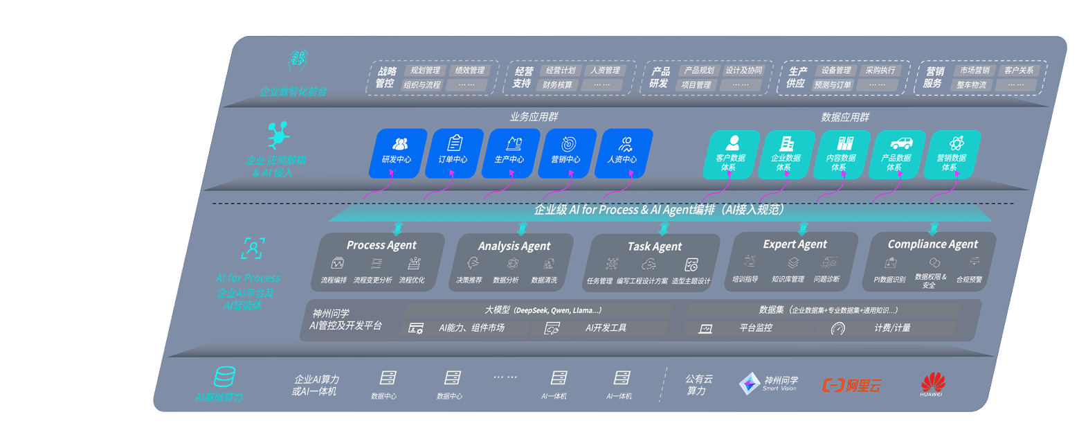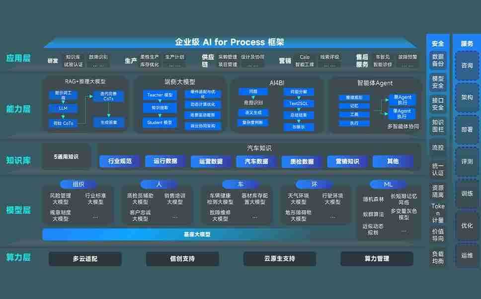 端到端的一站式AI工作空间深度融合了从企业战略规划到日常经营的全流程业务板块,,,,定向解决车企内部领域多、、、部门多、、链条长、、、场景碎片化等难题,,,,支持车企快速构建以AI为核心的生产力写作体系,,,实现任务执行与AI能力的无缝集成与交互