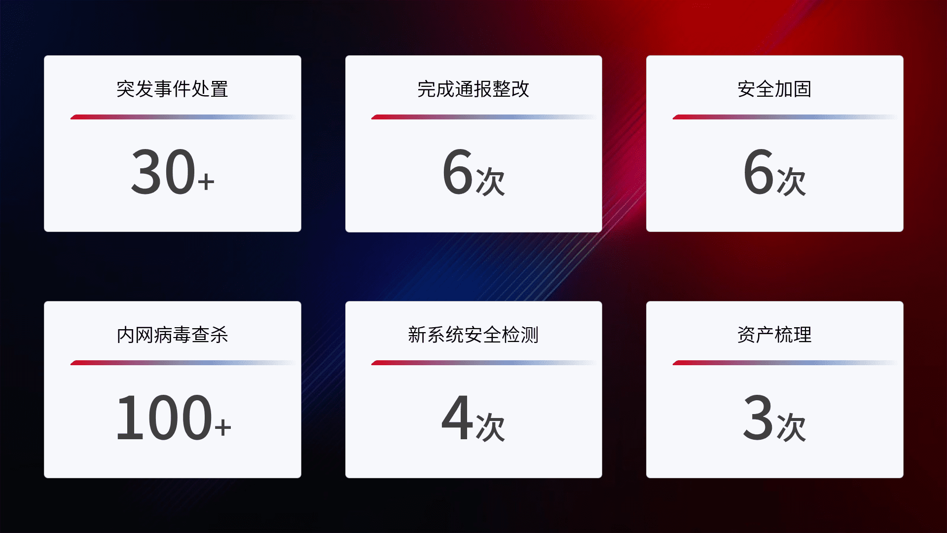 网络安全加固与风险管理:通过技术加固手段,,,,如加强区域隔离,,缩减攻击内网横向移动的范围;优化现有网络安全管理制度,,,,降低网络威胁暴露面,,,减少被黑客攻击的可能性。。。。
